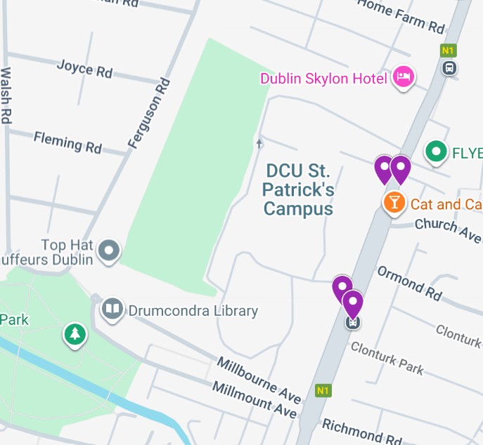 This is 15 minutes by bus. Busses leave every 5 minutes to the St Patricks Campus.